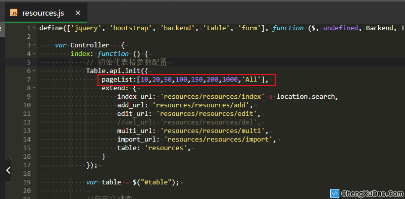 Table.api.init({ pageList:[10,20,50,100,150,200,1000,'All'], });